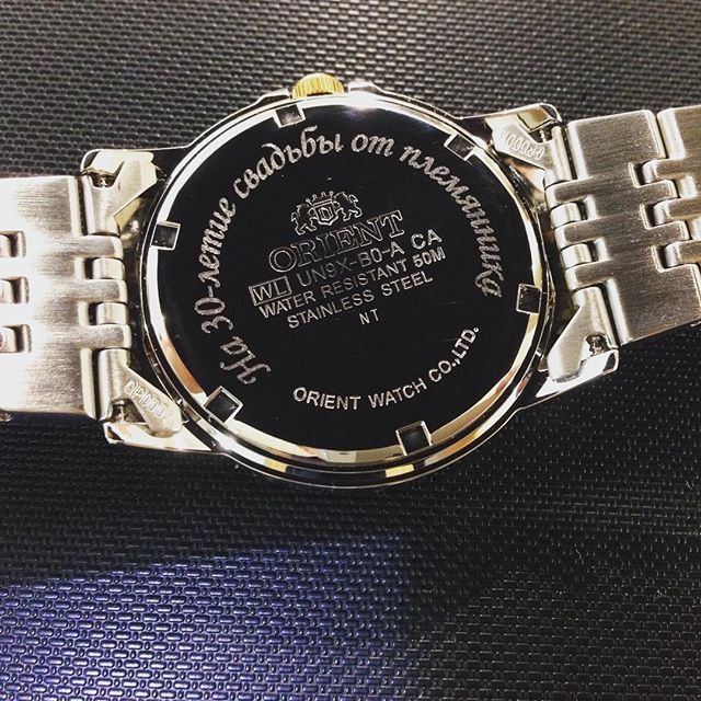 Вот это действительно задача, так задача! Сама по себе гравировка на наручных часах – дело техники. Наши профессиональные мастера нанесут любую надпись, красивые рисунки, используют подходящие шрифты. Работа будет филигранной, можете даже не сомневаться. Посмотрите на фото, и Вы увидите, как красиво выглядит наша гравировка часов в Москве. Но вот придумать важные слова, название, рисунок – это Ваша задача. Изначально должна быть идея, какая же гравировка на часах в подарок необходима. И тут есть два пути: посмотреть, что обычно пишется в особых случаях. Или придумать что-то свое, от сердца. Быть может, это будет что-то личное, важное именно для определенного человека, в особенности, если это гравировка на часах любимому. Даже пара слов может играть важную роль, поэтому стоит довериться своим эмоциям и просто их придумать.